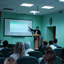 Во время практической части конференции выступил Акбар Торакулов. Хирург поделился со студентами ценными знаниями из личного опыта, подробно осветив возможности современной эндоваскулярной хирургии в лечении сердечно-сосудистых заболеваний. В своём докладе он наглядно показал, как малоинвазивные технологии позволяют спасать жизни пациентов с ОКС, оперативно восстанавливая кровоток в сосудах сердца.